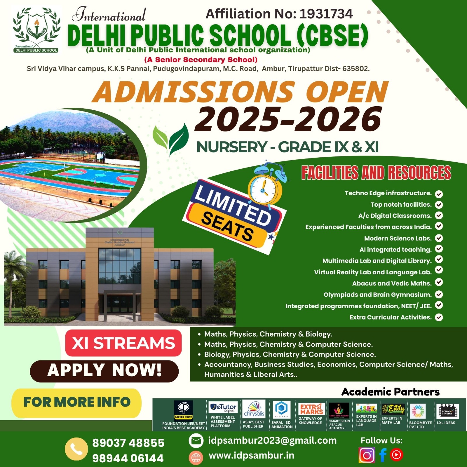 I Welcome and bless, all great leaders of tomorrow into fascinate and exotic school of excellence IDPS, Ambur!!